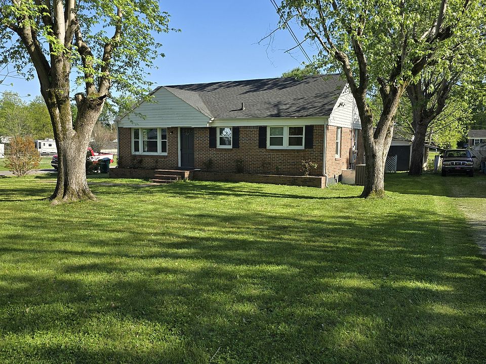 Welcome to this charming brick home nestled in a well-established neighborhood, offering the perfect blend of comfort and convenience. Situated on a corner lot, this home boasts recent updates including fresh paint, new flooring, & a partially new roof, ensuring a modern and inviting atmosphere. Step inside to discover a spacious den/living room featuring a cozy fireplace, ideal for gatherings or relaxing evenings. The split-bedroom layout provides privacy and comfort, while the walk-in shower adds a touch of comfort. Enjoy the convenience of newer tilt-in windows for easy cleaning and an ample floored attic for additional storage. Outside, the back patio beckons with a charming brick firepit, perfect for outdoor entertaining or simply unwinding under the stars. This home also offers a versatile shop/garage with electric and window air, catering to a variety of needs or hobbies. If you have adult children or parents living with you, this home offers the space and flexibility you need.