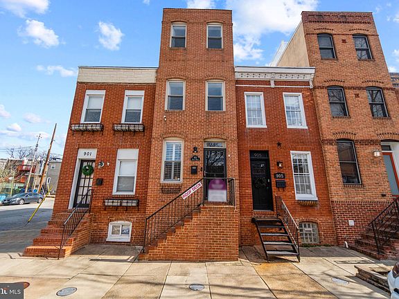 MITICULOUSLY MAINTAINED CANTON 3 STORY HOME IN PREMIERE LOCATION - nestled on the quiet 900 block of Baylis Street this stylish home offers an abundance of detail with coffered ceilings, two-piece crown molding, surround sound, custom built-ins and gas fireplace in the living room. Wainscotting wall detail, exposed brick, granite countertops, ss appliances nicely appoint the eat-in island kitchen with built-in dining room nook that leads to both rear paver patio great for entertaining and a finished basement. Switch back staircases lead you to the upper levels boasting 3 bedrooms, convenient laundry access in hallway with upper-level owner suite, light filled bathroom featuring separate jetted soaking tub and shower, hallway access to two-tier composite roof top deck with amazing panoramic views of the city. Recent updates include new upper roof and insulated crawlspace, easy street parking here!