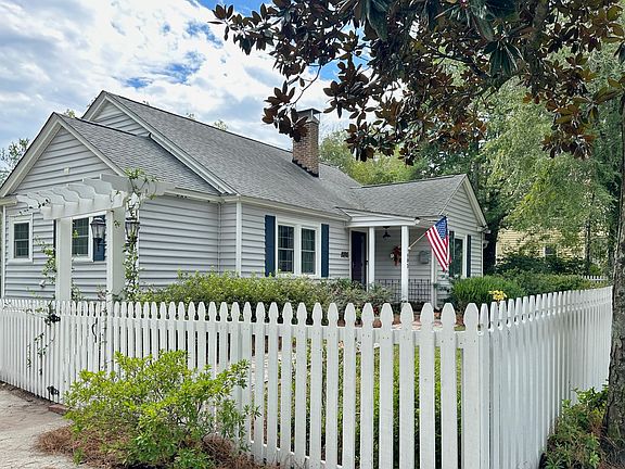 Step into this timeless historic Summerville cottage and transport yourself back to the early 20th century. This adorable single-story home on a huge corner lot is graced by a white picket fence in front and privacy fence behind, mature trees, flowers and shrubs, and a separate 2-car detached carport and workshop. There is plenty of additional off-street parking in this desirable area of Summerville. It is close enough to stroll down to the stadium for football games or over to Guerin's Pharmacy for an ice cream. Have a first-hand look at the annual Summerville parades or walk a couple blocks to the Flowertown Festival and the Taste of Summerville. Experience the hardwood floors, with charming, transom topped doors, and molding details.One of the home's two fireplaces and the kitchen range can be converted back to gas if preferred. Practical features include a new HVAC installed 2023, quartz countertops, stainless steel appliances, updated windows, vinyl siding and gutters. The main floor has a formal living room and dining room, 3 bedrooms, 3 bathrooms, a separate office, cozy den and mud room. There are finished flex rooms for storage or expansion in the attic. This idyllic 1919 home is perfect for entertaining and is nestled in the heart of historic downtown Summerville. It is convenient to Summerville Elementary of respected Dorchester District II schools. Upgrades include: all plumbing replaced with PEX, vapor barrier in crawlspace with a current termite bond, new roof in 2018, tankless water heater and a private deck. You've found your quiet retreat just far enough away, but still near beaches, Interstate 26, thriving industries and the airport. This move-in ready home is waiting for you to make it your own!