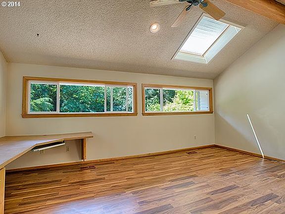 Remodeled home on corner lot surrounded by trees on cul-de-sac.Mstr. & 2nd bedroom on main.15 skylights throughout this house,refin hardwood flrs,new int. paint,upper level studio & office/media room. Master w/jetted tub,custom built-ins. 2nd bedroom has custom,wall mounted,Seico bed that folds down & has office work.station. Prof.landscaped front & back yards,pond,fountain & Andrew Carson custom artwork included.Open,light & inviting!