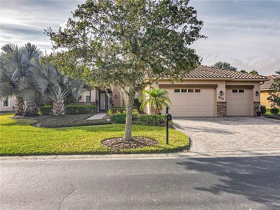 PRICE REDUCED...READY FOR NEW OWNER! Welcome to a Beautiful VENETIAN MODEL, TUSCAN INSPIRED ESTATE HOME in the PORTOFINO Estates Neighborhood of Solivita. This is the Neighborhood to "Be In" and this is the home "Be in". This Home is on a PREMIUM, OVERSIZED, CONSERVATION Lot with 3 Bedrooms, 3.5 Baths, Soaring 12' Ceilings in the main living area and 10' ceilings elsewhere., 8' doors, Custom Cabinetry, Custom Lighting, Extra Wide Crown Molding and baseboards, Upgraded Granite throughout the GOURMET Kitchen, an Extended Lanai, Rounded Architectural Corners, Tile laid on the diagonal, Tray Ceiling in the dining room and Master BR, a newer HVAC installed 2014. All 3 Bedrooms have en-suite baths with expansive walk in closets in the Master Bedroom Suite and Bedroom 2. Upgraded Ceiling Fans and Lighting Fixtures throughout, Special Architectural Accents throughout this fine Estate Home. Upgraded Laundry Room with custom cabinetry and granite counters, plus Custom Cabinetry in the Garage for extra storage. The CDD on this home has been paid in full, a bonus reducing your annual taxes. Large Home with a truly inspired floorplan making this home the perfect modern, living/entertaining space. From the lovely Foyer to the Lush Conservation Views this home is truly special. Solivita is a 55 PLUS, Active, AWARD WINNING Community with 14 pools, 2 Championship Golf Courses, 2 State of the Art Amenity Centers complete with multiple gyms, exercise studios, trainers, classes, restaurants, entertainment, over 200 clubs to join. Visit our art studio, library, join the community garden, work out with Fido in our Dog Park. Play pickleball, tennis, softball, horseshoes, bocce ball, or enjoy a bike ride in the community. Solivita has over 4,200 acres of parklands, conservation, ponds and natural beauty. Enjoy the quiet beauty of our gated community, make friends, have fun and enjoy the fruits of your labor.