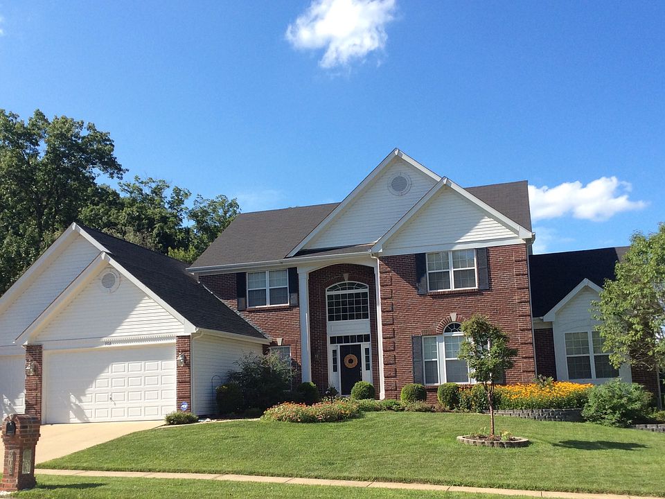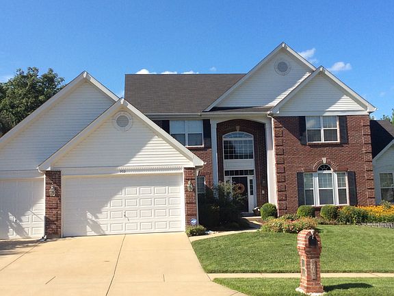This striking spacious home is absolutely loaded with quality upgrades and nestled on a fenced, level backyard with professional landscaping!!! A Grand 2-story entry with a graceful t-staircase, flanked by office area & dining room, both w/cherry hardwood floors. The soaring great room features a 2-story floor-to-ceiling mirror & millwork fireplace. A large wet bar provides transition to the breakfast room & kitchen with 42'' cherry cabinets, solid surface counters, center island with wrap around seating for bar stools, double ovens, walk in pantry, and planning desk. Massive laundry room. The vaulted hearth room with a fireplace walks out to a cedar deck added in 2006. Main floor master suite with large separate walk in closets, double sinks & vanity area, separate tub and newer shower trim. The upper level offers 3 bedrooms, each has its own private full bath. There is also a w/ bonus room on the upper level that could be converted to a 5th bedroom. new carpet in 2006, walk-out basement w/bath rough-in. Too many upgrades to list here!!! Subdivision pools & tennis. and private country club for golf, join a Jr. golf or swim team. Award-winning Rockwood Schools. Make sure to check out the virtual floor plan online to see room sizes. CALL LISTING AGENT KELLY BENNETT OR BRYAN RANKINS 636-577-0085 FOR MORE INFORMATION OR A PRIVATE TOUR.