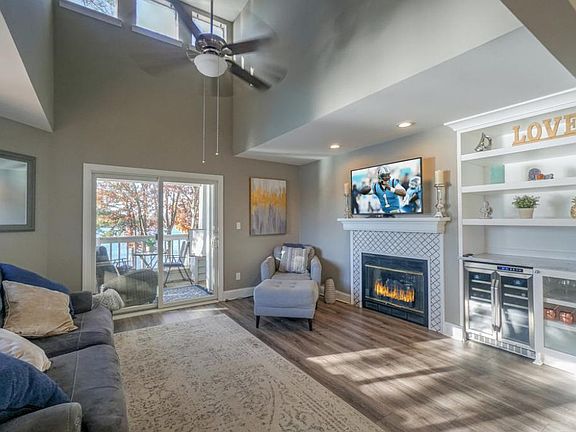Beautiful Lake Norman condo with penthouse views! This condo has one of the best views in Davidson Landing of beautiful Lake Norman. The lake can be seen from every room! This fully furnished condo is a 3rd floor end unit (top floor with a lot of windows) location in the Southpoint complex of Davidson Landing in Davidson, NC. This unit has 2 bedrooms and 2 full bathrooms. Each bedroom has its own bathroom allowing either to be used as the master bedroom. One of the bedrooms is set up as an office, but could easily be made into a 2nd bedroom. Updates include new floors, built-ins, wine cooler, and a tiled fireplace. The kitchen has been updated with shaker style cabinets, marble countertops, and stainless steel appliances. Both bathrooms have been completed renovated. This 3rd floor location has vaulted ceilings in the great room. The end unit location has a lot of extra windows that provide more light and an excellent lake view. Southpoint has a scenic pool also looking out at Lake Norman as well as a community grill and picnic tables.