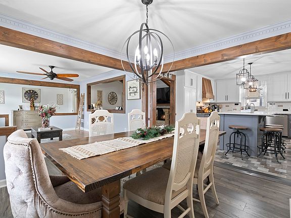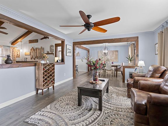 Beautifully maintained and updated brick ranch! Owners have done a TON of updating to make this home move in ready and an ideal home for entertaining. LVP flooring throughout most of the home, walls opened up for an open floorplan flow, custom wood trim around doorways, new lights and fan fixtures, , recessed lighting, totally updated kitchen with new shaker style doors and hood cover that lifts up for access to the cabinet behind, island with microwave, granite and quartz countertops and built in area for fridge with surrounding cabinet storage. The den has a vaulted ceiling with wood beam, fan/light, brick fireplace with gas logs and a door to the HUGE rear great room addition. This is a totally unique space of its own that has its own mini split heat/cooling system (included in total SF), 3 fan/lights, tons of windows and the ultimate space for entertaining. The bathroom vanities have been updated with new shaker doors and granite/quartz countertops. The backyard is just awesome. Enjoy the above ground pool with a nice deck for the chairs, shed with power that could be a great workshop, covered firepit for the cooler evenings, covered patio with hot tub for year round, beautiful landscaping all around and even a shaded area on the side of the house for the delicate plants. HVAC and ductwork replaced in 2020 and house was replumbed with updated PEX plumbing. Seriously, this house has it all and has been very well maintained.