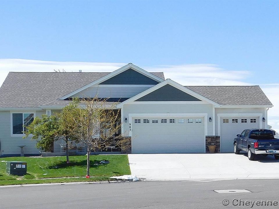 Beautiful ranch-style home in The Pointe. Great room with vaulted ceiling and open floor plan. Formal dining room lined with windows. Hardwood floors. Kitchen with granite counter tops and snack bar. Pantry. Main-floor laundry. Master bedroom with double-door entry, deluxe master bath, and a walk-in closet. Gas-log fireplace. Fantastic patio and fenced back yard with two storage sheds. Three- car garage. Full unfinished basement to finish the way you want.