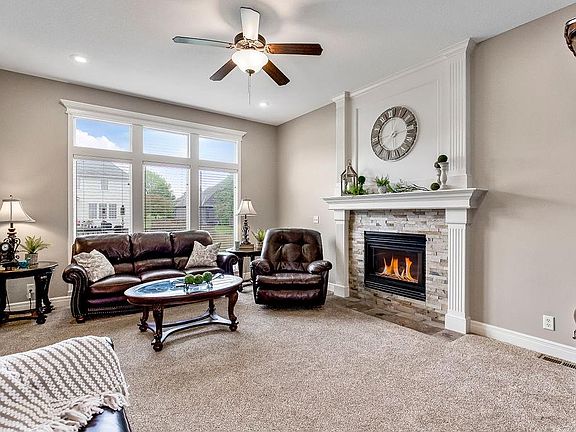 - Features: Carpet, Ceiling Fan(s), Fireplace
