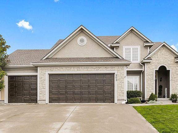 Stunning home at a great price! Better than new - Enjoy all the luxury of new construction at a lower than new construction price per square foot! FIVE true bedrooms with all new flooring throughout and newer interior paint! Enter first into the 2-story foyer with new hardwoods that expand to the formal dining room with wainscoting! Family room with fireplace with new stone and tile surround and a wall of windows! Kitchen with Corian counters, stainless appliances, breakfast area, and gleaming hardwoods! Main level Master Suite with walk-in closet and private spa-like bath with new tile, whirlpool tub, tiled walk-in shower, and double vanities! Upstairs is three more bedrooms, one with its own private bath, an additional hall bath, and ample storage closets. Finished lower level with another full bath and rec area with wet bar! Additional true 5th bedroom below! Outside you will find the large, expanded patio, re-stained deck, and fenced yard! Storage shed and basketball goal stay! Located within walking distance of Moon Valley Park with fields, pavilion, and playgrounds AND you can take the trail right over to Raymore Recreation Park (Sports fields, activity center, ponds, trails, and more!!!) Hurry!!