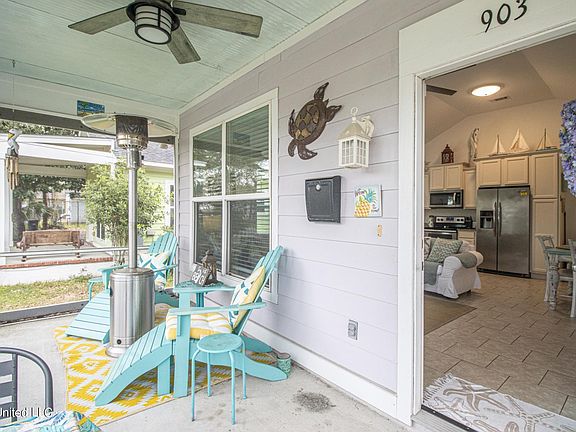 ADORABLE 3 bed 2 bath beach cottage that is currently an active Air BnB rental. Short walk or bike ride to the beach and close to casinos and shopping! Only 9 yrs young, this charmer comes completely furnished with a view of the Gulf of Mexico from the front screened-in porch! Make this your primary home, keep it as a functioning short term rental~or do a little of both! HUGE lot with double driveway perfect for an RV; set up with 50 amp electrical hookup and water. Great backyard with storage shed, fire pit, patio/grill area, and fenced-in yard. Air Bnb listing is called ''Come Monday'' and has the highest rating.