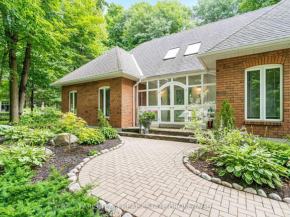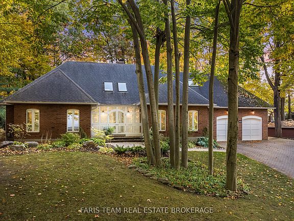 Top 5 Reasons You Will Love This Home: 1) Tucked away in one of Midlands most desirable neighbourhoods, this timeless all-brick residence graces a rare 120'x200' in-town lot, surrounded by mature trees, perennial gardens, and charming rock walls, offering a sense of prestige and peaceful seclusion 2) Step through the grand front entrance into a home rich with character, from cathedral ceilings and a formal dining room bathed in natural light to a spacious main level featuring a generous primary suite with a luxurious 5-piece ensuite, main level laundry, and a cozy family room anchored by a wood-burning fireplace 3) The heart of the home is an expansive kitchen appointed with granite countertops, stainless-steel appliances, and ample cabinetry, seamlessly opening to a sunlit breakfast area with walkout access to the backyard deck, perfect for gatherings or quiet mornings with coffee 4) Whether you're unwinding by the fireplace in the sunlit living room or entertaining on the multi-level deck, this home delivers year-round comfort and connection to nature, with a fully fenced backyard that feels like your own private retreat 5) Practical touches abound, including an oversized heated and insulated double garage with interior access, a finished basement with walk-up to the garage, and an interlock driveway, making it ideal for multi-generational living, welcoming guests, or simply enjoying space and style without compromise. 3,071 above grade sq.ft. plus a finished basement.