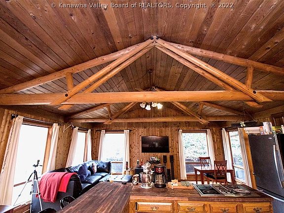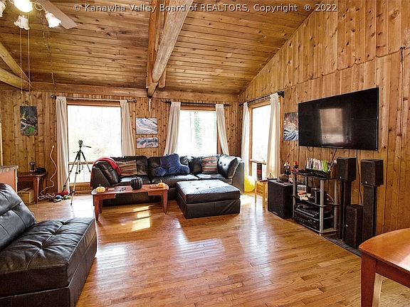 NICE HOME ON PRIVATE LOT! American Timber Home, open & airy with hardwood floors, beautiful exposed beams throughout home, 4 bedrooms, 2 & 1/2 baths, family room with stone fireplace, 2 car garage, loads of storage, large deck overlooking private wooded yard with your own small gold fish pond. Fenced side yard, ideal for pets or children.