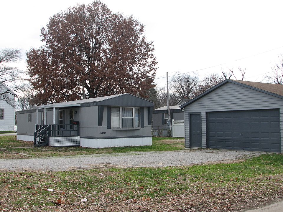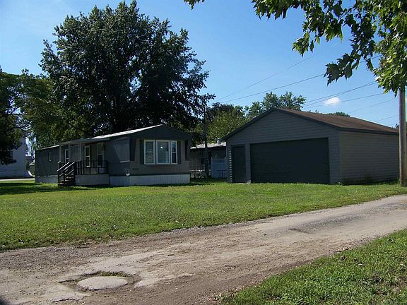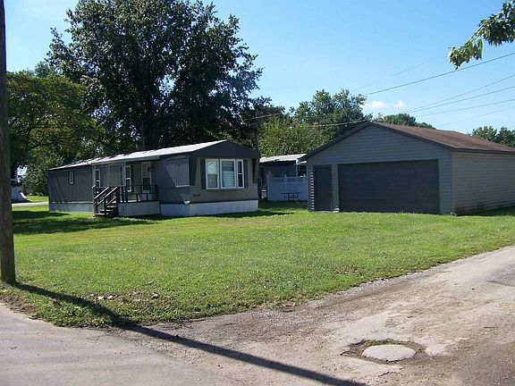 TWO BEDROOM MFG. HOME ON CORNER LOT & 2.5 CAR GARAGE.ONLY $45,000!! Remodeled. Looks great! Check out the pictures! New floor covering throughout! New beautiful Eat-In kitchen with new cabinets, stainless steel double sink and fan hood! Plus built-in study/office desk off kitchen. Bathroom features new shower, commode and new plumbing. Enjoy the large 2.5 car detached garage complete with electric service, and garage door opener. New replacement windows from Benthal Brothers. New 220 wiring to kitchen for electric stove. Water lines replaced. Ready for a nice comfortable home that's ready to move in? Take your tour today. You will love the inside!