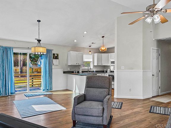 This Single Story Stunner is situated on an oversized, 11,000 square foot homesite! With features including a front Covered Porch, Back Yard Sun Deck, Outside Shower, Room Vegetable Garden and possibly a pool.  Updated Interior, this home will not last long! Low Maintenance Vinyl Siding and an open Floor Plan with no interior stairs to climb make this home super easy to maintain and enjoy! Recent Improvements include: Back Deck 2019;  Rear Sliding Door and Shed Door 2019;  Bathroom toilets (both) 2019; Front Storm Door 2017; HVAC 2016;  Wood Laminate Flooring 2016; Bathroom (both) Tile Flooring and Light Fixtures 2016; Kitchen and Dining Light Fixtures 2016; and Hallway Bathroom Vanity 2016! Ideally located in the heart of Kill Devil Hills close to many conveniences but fair enough for peace. Not in a Flood Zone (X ZONE)...NO Flood Insurance Required!
