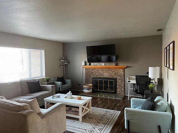 *fully furnished, utilities included* 2-bedroom, 1-bath house. Laminate and vinyl flooring throughout provide both durability and easy maintenance. Forced air heating and central air cooling for year-round comfort. Bedroom dimensions are 13*11 and 13*10, with large closet and storage space. Major furnishings include: beds, frames, dressers, nightstands, couches, Roku TV, desk, coffee table, couch chairs, dinning table, and dining chairs. Fully fenced backyard and patio area. Major appliances included: refrigerator, washer/dryer, and stove. Additional features include walk-in closets, a well-maintained lawn with automatic sprinklers, and a natural gas heating system. There is a private studio adjacent to the unit. The studio is rented and is completely sectioned off from your unit, allowing both tenants full privacy. Most utilities are included. Place is fully furnished. Lease terms: one year Pet deposit (only dogs allowed): additional $40 mo. Non-refundable cleaning fee (if furnished): $500 This is a non-smoking house. Owner will maintain lawn.