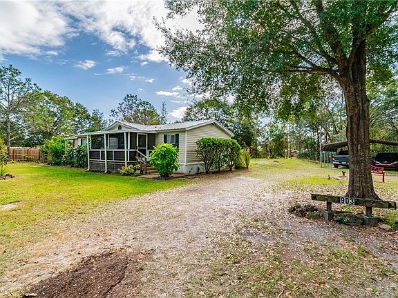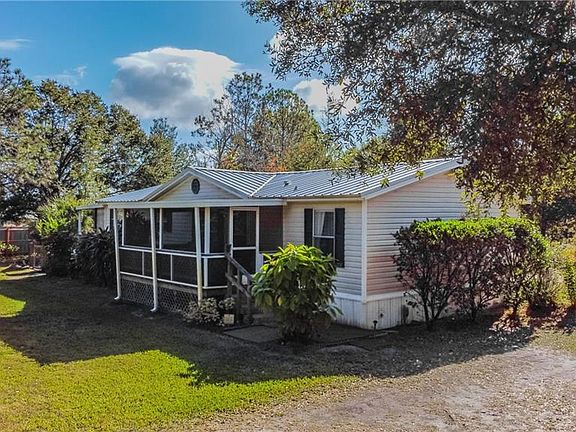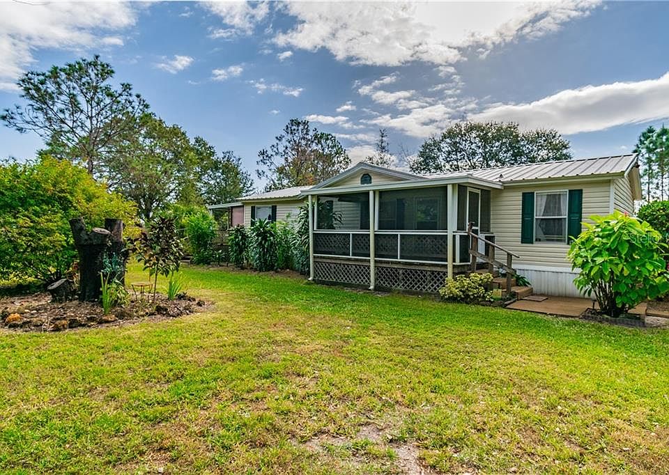 This hidden gem is full of charm and possibilities, tucked just outside of town. If you are seeking the country lifestyle with all the conveniences of the city, this is the property for you. Measuring just over 2 acres, this property features a 3 bedroom, 2 bathroom mobile home, an oversized carport, separate RV covered parking with separate private screened in porch and plenty of storage buildings. The home features an oversized eat-in kitchen, large living/dining room combo and split bedroom floor plan. Enjoy outside living with the 2 fully screened in porches. Enjoy your morning coffee from the front porch where you can overlook the property and enjoy the shaded side porch where you can supervise the family fun in the newer above ground pool that is fully fenced for added safety. The property boasts 2 RV electric hookups including 20x36 covered RV parking with attached fully screened in porch. There are 2 fully functioning wells with water softeners and 2 separate septic tanks on the property. There are several sheds on property including 2 12x20 sheds with full electric. Some recent upgrades include 1 year old A/C unit and new sump pump. Bring your family, all your toys, and all your animals to make this property your own- the possibilities are endless! No HOA or CDD! Schedule your private showing today!