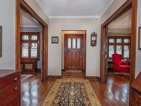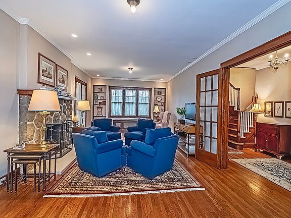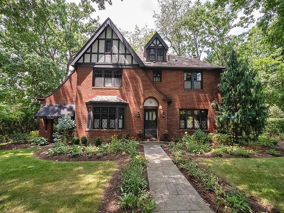 Step into the charm of Tudor elegance with this 5 bedroom masterpiece nestled on a corner lot located in a coveted neighborhood. Radiating timeless allure, this home boasts intricate architectural details including picturesque leaded glass windows, gleaming wood floors, & built in cabinetry. Center hall floor plan allows entertaining with ease in both the spacious formal living room with a gas fireplace as the focal point, built in window seat, bookshelves & French doors leading to a covered side porch; formal dining room with built in cupboards, leaded glass windows allows for natural light. The kitchen with Cherry wood cabinetry, stainless steel appliances, & back staircase leading to the upper floors is open to a morning room leading to the private side patio & garden. 2nd floor primary suite has a full bath & generous closet. 3 guest bedrooms & hall bath. The 3rd floor has a 5th bedroom, full bath & bonus room ideal for home office or playroom. 2 car detached garage with storage.