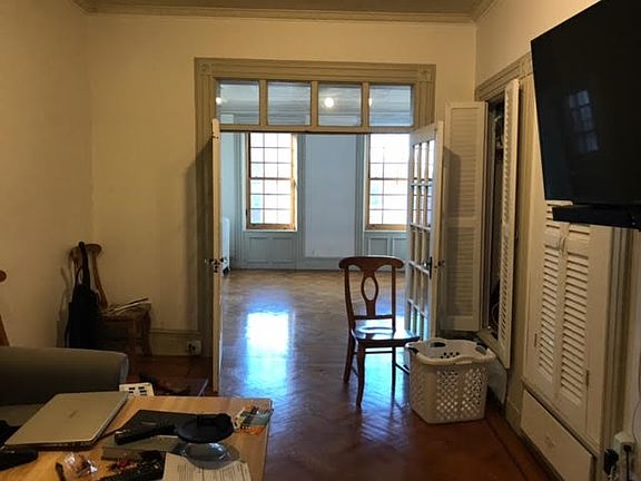 Historic Doctors Row Brownstone Apartment Large 2 bedroom apartment on 9th & Washington Loaded with Historic Hoboken Old World Charm, featuring today's modern amenities. Approx. 900 sq. ft. of living space 10' ceilings, Exposed Brick Walls, Inlaid Hardwood Floors, Tin Ceilings with Oversized Crown Moldings, Tin Wall Coverings with Stained Hardwood Trim, Decorative Fireplace w/ Mantle. Large Eat-In Kitchen w/ Dishwasher. Washer & Dryer in Unit Located smack in the middle of town. So your walking distance to just about everything Hoboken, and the Bus stop at your doorstep makes this the perfect location. No Pets