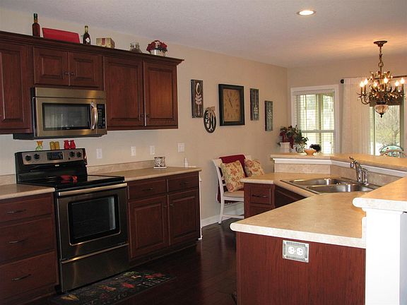 Like living at the lake, without the drive. Enjoy the serenity of the waterfront views from almost every room in this pristine great room ranch. Inviting large foyer leads to the totally open great room - kitchen - dining area. Big kitchen island provides setting for four bar stools. Spacious master bedroom with a deluxe mater bath. All three bedrooms feature walk-in closets and closet tamer shelving. Custom Grabill cabinets and beautiful hardwood floors. The enclosed three season porch is the perfect place to enjoy the water view. Come take a look, you will be impressed!
