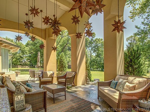 Private South Tulsa estate situated on 2.5 acres (M/L) with pond, towering trees & gated access. Built in a classic Mediterranean villa style, primarily on one level with an open plan, granite & stainless chef's kitchen, family room with massive fireplace & luxurious master suite. Finely crafted with attention to every detail including expansive windows that view the dramatic patio under the stars & tranquil backyard. Dual offices. Over-sized heated garage. Safe room. New Roof & updated mechanicals.