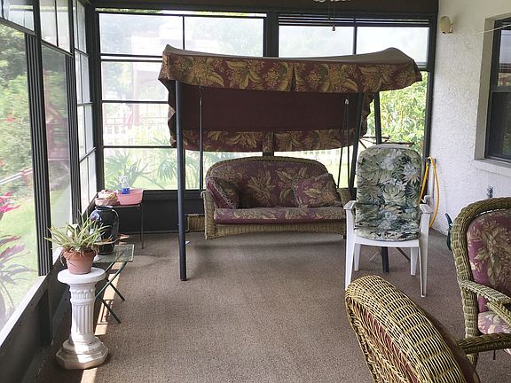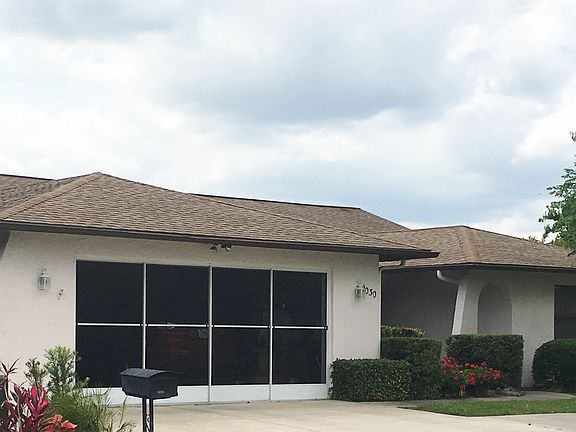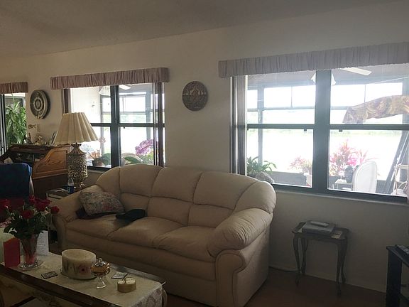 LAKEFRONT Single family, one story BLOCK house on just over a quarter of an acre lot. On the front of the house, you have a nice COURTYARD where you can sit and enjoy the birds coming and going. The CIRCULAR DRIVEWAY provides easier and safer access to the road. As you come in, you'll have the kitchen on your left and to your right, you have bedroom 2 at the front of the house, bathroom 2 and a large hall closet. The kitchen is equipped with ALLl appliances and there space for a dinette by the BAY WINDOW. There is a door that leads to the garage. If you go beyond the kitchen and hall, you will find to your right, the living room and to your left the dining room. This area has VAULTED CEILINGS and one slider that leads to the lanai. Beyond the dining room, you'll get to the entrance of the master bedroom. The master is a very good size with plenty view of the water thru the windows and access to the lanai thru a sliding door. The lanai is very large and the ideal place to sit and enjoy the fresh breeze in the morning. Also, there is an ENSUITE BATHROOM equipped with EXTRA LARGE SHOWER, WALK IN CLOSET, double medicine cabinets and a door that leads to the utility room. The utility room has cabinets and a laundry tub. From the laundry room, you can access the garage. In the garage, you have access to the attic (WITH BUILT IN LADDER), water heater, etc. There is a side door that leads to the side yard. As you walk the grounds of this property, you can tell that a gardener lived here. There are several fruit trees such as PEACH, FIG, AVOCADO, STAR FRUIT, LOQUAT, and a CITRUS TREE. A lot of the trees and plants are dormant still due to the season. When you reach the back of the property, you'll enjoy the beautiful view of the lake water. When I was there, I saw turtles, very good size fish and even a pelican! This is an ESTATE SALE and could use some TLC.