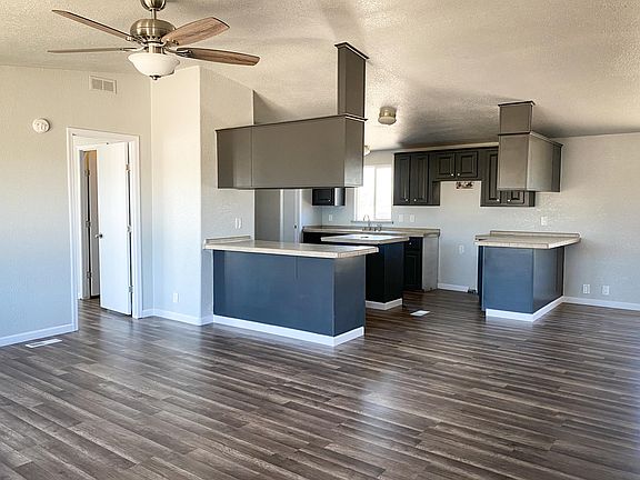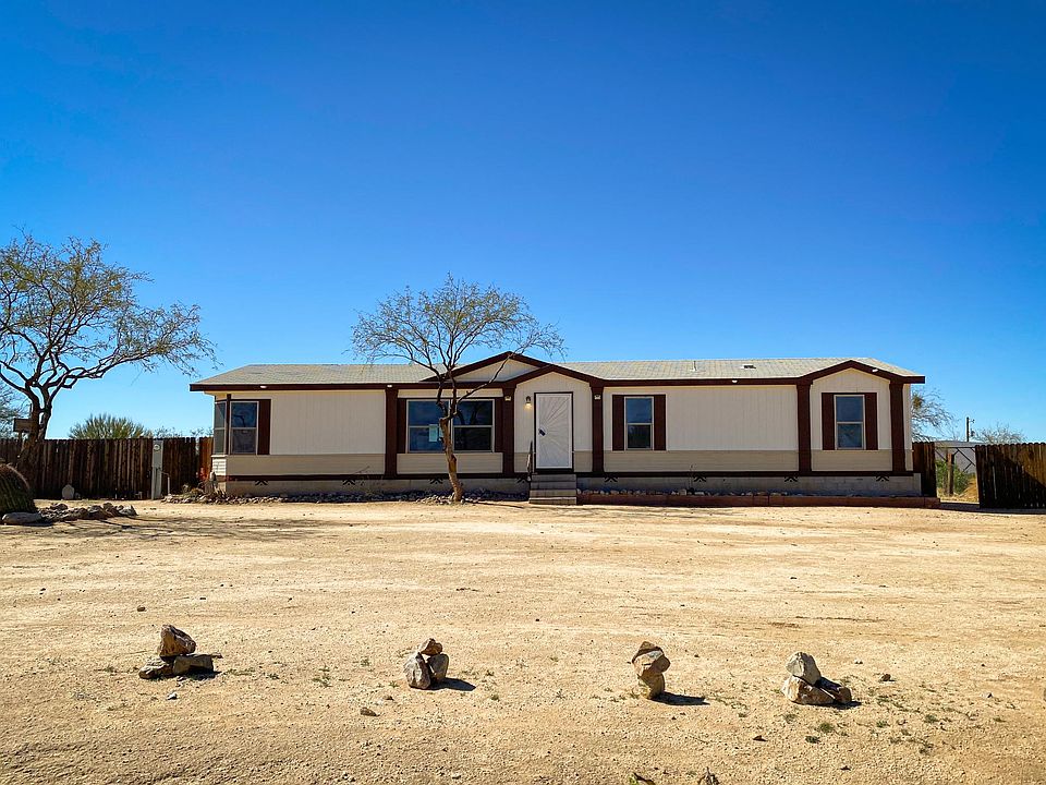 Beautifully remodeled manufactured home on 1 acre lot with panoramic mountain views and natural desert. Exterior in great shape. Native plantings plus raised flower bed. Brand new central A/C & heater. All new wood-look vinyl flooring and new interior paint in clean modern colors. All cabinets (kitchen, bathrooms, and laundry) freshly done in charcoal with new brushed nickel hardware. Open living, dining, and kitchen areas have high ceilings to provide an airy feel. Beautiful kitchen fully loaded with walk-in pantry, island, and breakfast bar. Brand new matching fridge, oven range, and dishwasher included. Large den plus 4 bedrooms; 3 with walk-in closets, all with vaulted ceilings. Master bedroom has en suite bathroom featuring garden tub with shower. 2 other full bathrooms, each with combo tub/shower. Remote control ceiling fans. All dual pane windows. Rear laundry room has storage & space for full size machines. Large lot offers endless possibilities. Circular driveway plus plenty of room for RV storage. You could even build a garage or keep horses. Perfect rural living! $1975 rent a month, $1975 deposit, $25 a month pet fee, $50 application fee. No utilities included in rent. For more info, please Zillow message me. Note, this home is NOT LISTED ON CRAIGSLIST. Any such listing is a scam! For your safety, please deal directly with us.