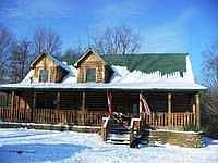 BROWN COUNTY DELIGHT!2003 log home.Long, broad covered front porch welcomes you. Enter home through stained glass entry door.Behold the soaring ceilings over hickory flooring in the great room that leads to a mile long (just kidding!) breakfast bar and kitchen.Upscale hardwood floors throughout, 6-panel doors...WOW!Master suite upstairs with jetted garden tub, built in drawers & loft area for lobby area/office. All appliances stay.2 car garage w/climate controlled woodshop. Metal roof-lodge look!