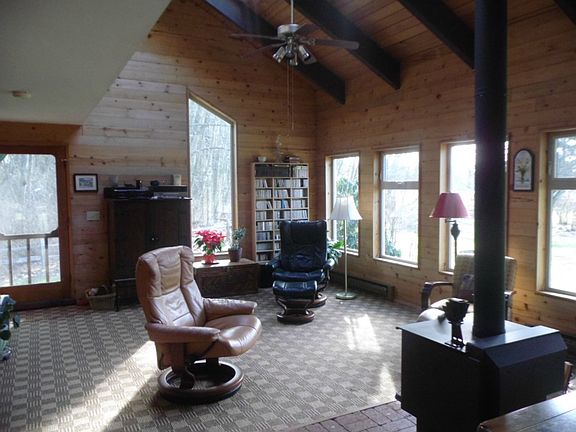 - Fireplace features: wood stove