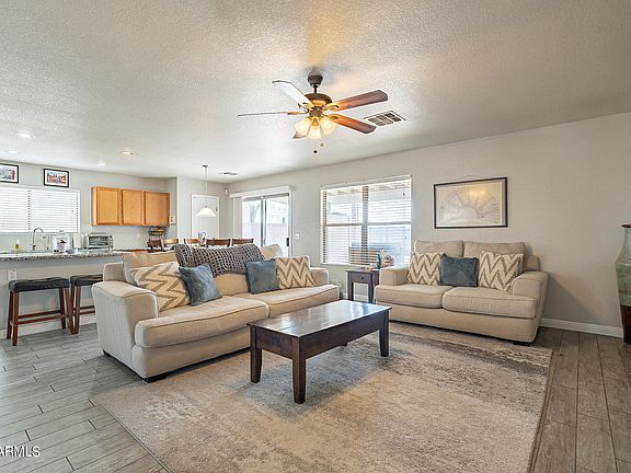 Gorgeous single story in desirable Arizona Skyline with a ton of upgrades! Open and spacious floor plan perfect for entertaining, along with a separate living area! Upgraded wood look tile flooring. Kitchen updated with granite counter tops and island. Bathrooms have been updated with quartz counter tops, new cabinets. Master bathroom redone with dual shower heads, floor to ceiling tile in shower, quartz counters. Flex space den that could be used as an office or playroom. Quiet interior neighborhood location. Fantastic location close to freeways, shopping, etc.