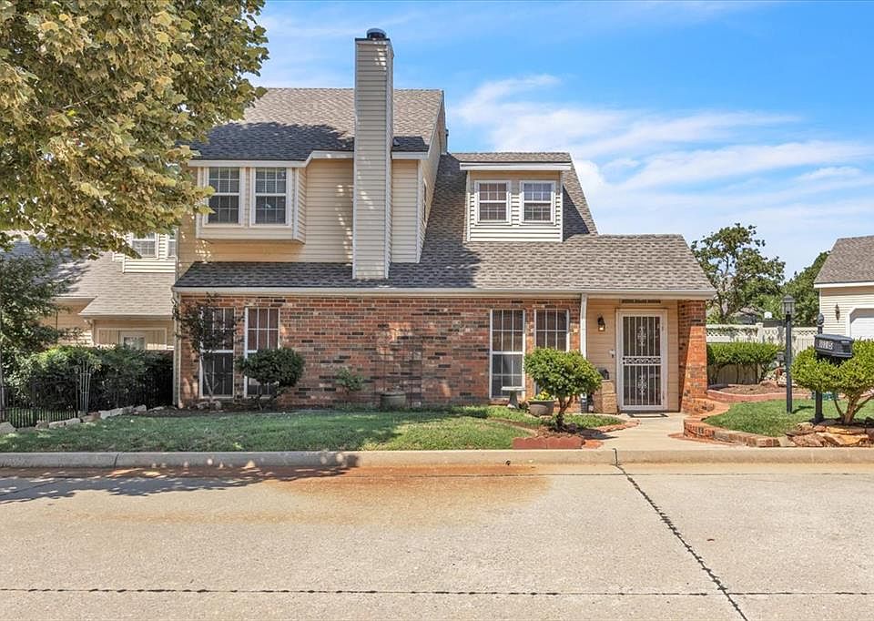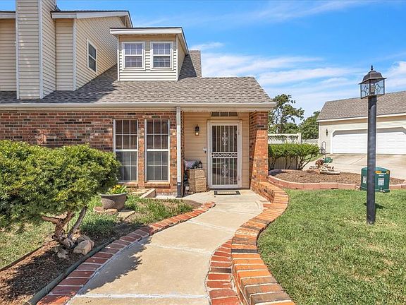 Rare find in The Timbers! This beautifully maintained two-story townhouse offers 3 bedrooms, 2 baths, and tons of square footage in a charming, close-knit community. As you enter, you’ll be welcomed by a spacious living area with a brick fireplace, cathedral ceilings, built-in entertainment center, and a coffee/wet bar. The quaint kitchen features a built-in stove, oven, microwave, breakfast bar, and a large built-in hutch with desk—plus abundant cabinetry and storage throughout. The primary suite is conveniently located downstairs, offering two closets and a spacious en suite with double vanities, a separate tub, and shower. Upstairs, you’ll find two large bedrooms connected by a Jack-and-Jill bath. Recent updates include a new roof (2023), upstairs AC unit (2022), downstairs AC unit (2024), sump pumps (2024), and luxury vinyl flooring in the living room and bedroom (2024). Step outside to your own private oasis—darling landscaping, an extended brick-paver patio, privacy fencing, and a beautiful courtyard perfect for enjoying Oklahoma sunsets. The property backs to a peaceful wooded common area, adding to its sense of privacy and charm. Located in a inviting neighborhood right next to Soldier Creek Elementary, you’ll be within walking distance to parks, restaurants, medical facilities, and shopping. Also, less than a mile from the community park and water park, a nearby golf course, and only minutes to Tinker Air Force Base. Homes in this sweet neighborhood rarely come on the market—don’t miss your chance to own this one-of-a-kind home that’s full of character, convenience, and comfort!