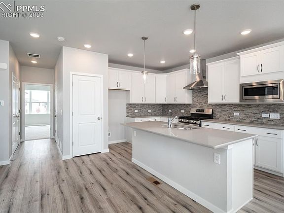 A refined balance of classic comforts and modern luxuries come together to make this new construction home in Revel at Wolf Ranch a great place to build your future! Do you need a home with a private teen/guest/roommate suite? This floorplan features a private guest suite on the first floor and opposite side of the home from the upstairs Owner’s Retreat. The open living and kitchen area showcases oversized windows for lots of natural light and a covered balcony where you can enjoy sipping on a beverage while overlooking the beautiful community with stellar sunsets and the Front Range mountain tops to the west. Warm up on those cool Colorado nights in front of your fireplace or cool off after a hot summer day in the spectacular Super Shower in your Owner’s Bath. This open cook's kitchen features a gas range and designer hood that vents to the exterior (as do all vents, the fireplace and your included active Radon Mitigation System), white cabinets with grey quartz countertops, stunning beveled subway tile backsplash and more. The Xeriscaped and fenced yard is maintained by the HOA and your 8-foot tall, insulated garage doors open to an area that provides abundant storage.