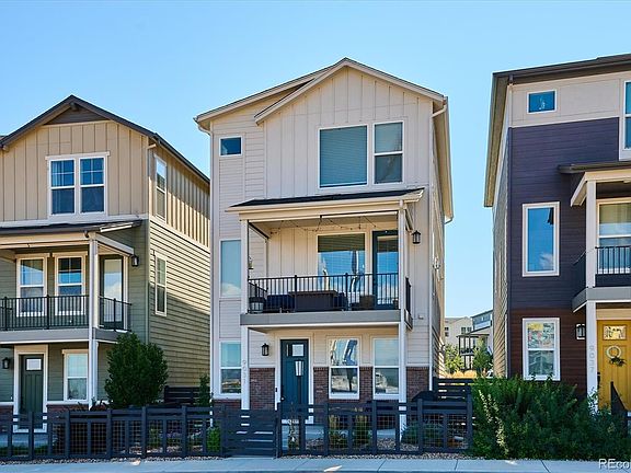 Welcome to this exceptional three-story residence, newly built by Shea Homes in 2020, offering a seamless blend of modern elegance & contemporary comfort. Located in the sought-after Crescendo at Town Center, this meticulously maintained low maintenance home features 4 spacious bedrooms and 3.5 beautifully appointed bathrooms. Step into the inviting Great Room, where you'll find a cozy custom-tiled fireplace & direct access to a spacious deck, ideal for entertaining & relaxing. The Great Room is pre-wired for a ceiling fan, enhancing comfort year-round. The adjacent gourmet kitchen is a chef’s paradise, complete with soft-close cabinets, stainless steel appliances (refrigerator included), gas cooktop, double oven, & striking quartz countertops. The expansive island with seating & the dining area with an included TV mount make this space perfect for hosting gatherings. Main level also boasts a study with custom decorative wall, perfect for work from home. The primary suite offers mountain views & a luxurious ¾ bath, complemented by an upgraded custom closet with over 13K in enhancements, including soft-close cabinets, laundry basket, & a jewelry drawer. Spacious secondary bedrooms are pre-wired for future ceiling fans, ensuring comfort throughout the home. Additional features include a laundry room with a washer/dryer & custom tile accents, countertops, & cabinets. You will love the mudroom with a decorative wall and live edge wood bench. Enjoy outdoor living with a covered deck showcasing mountain & city views, complete with a screen door & sunshades. The fenced, landscaped front yard & covered patio offer an inviting space for relaxation and entertainment. The insulated two-car garage features an epoxy-coated floor for easy upkeep & additional storage. This exquisite property combines modern design with unparalleled comfort. Don’t miss your chance to own this stunning home where elegance meets everyday living.