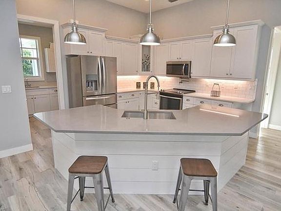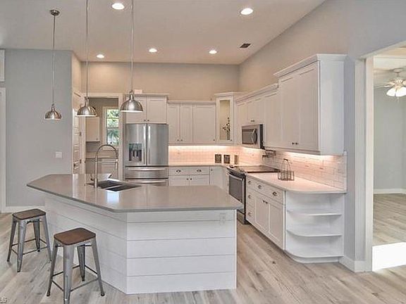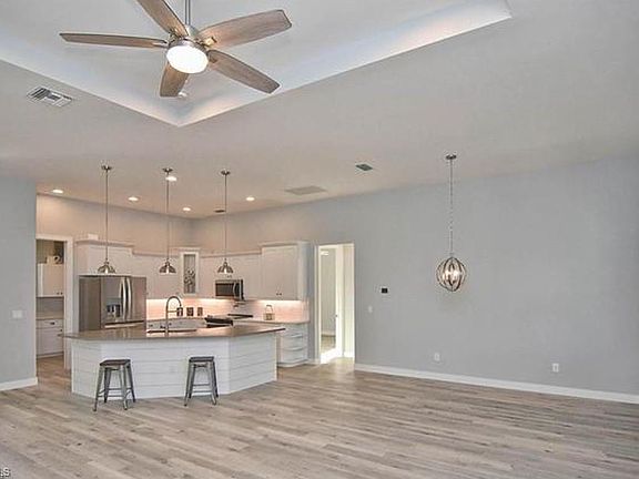 New beautiful home located in this prime San Carlos park location. Within walking distance to 3 Oaks park. This 3/2 home offers over 1,800 square ft. of living space with stunning upgrades throughout. A brick paver driveway and a tall double door entryway welcomes you into the open great room with an 11 ft. tray ceiling and recessed lighting, plus 8 ft. doors and stunning wood plank floor tiles. In the kitchen your new home features white shaker style wood cabinets with soft close drawers, a beautiful Quartz island and upgraded premium appliances. The master suite offers a tray ceiling, beautiful walk through tiled shower with a rain shower head, separate soaking tub & Quartz counter tops. The builder spared no expense with impact windows and doors and the latest technology in peel-n-stick roofing underlayment. In addition, quartz countertops have been installed in the finished laundry room and guest bath. The rear screened paver patio and electronic controlled irrigation system completes this perfect new home. Enjoy the Florida lifestyle without the HOA fees. Minutes from FGCU, Gulf Coast Town Center, the airport, I-75, and the beaches.