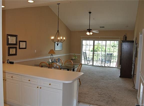 Bright and airy third floor unit in popular Heatherstone. Bedrooms and living area have vaulted ceilings that make this condo feel much larger than others in the complex. The huge covered deck was recently refurbished and has an awesome view of the community pool. This unit with new water heater and gently used appliances has been well-maintained by its original owner. It is super convenient to UNCC, Uptown and the recently opened LYNX light rail. $256.80 monthly HOA includes $60 special assessment for roofing that lasts until December 2018.
