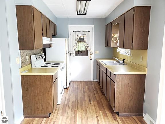 Solid 2 bed 1 bath house situated in the Village of Kaleva, on a full basement studded off to be finished, 1 car garage, main floor laundry and newer flooring, city water and natural gas.