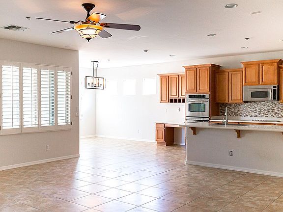 West Wing Mountain home, 2600+ sq ft single story, very popular Split floor plan. 4 Bedrooms and 3 baths plus a den. Garage is 2+1 Tandem. One of the largest lots with large lawn and paver backyard and beautiful mountains view. Large Master Bed Room with huge walk in closet. Upgraded 18in tile and Plantation Shutters throughout the entire home. WASHER and DRYER NOT INCLUDED. HOA rules prohibit parking on street and NO RV's.