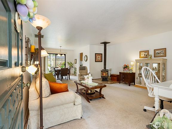 Great one level duplex with 2 bedrooms, 1.5 baths, laundry room, den, wood burning stove and storage area on each side. Newer kitchen in Unit A. Private patios on each side, garden shed in peaceful yard. Circular drive with ample parking and 35' long RV Parking pad with electricity and clean out by Unit B. Garages have been converted to a room on each side (unheated), approx. 300 sq ft total. Approx sq ft of each unit is 1,064 + 150= 1,214, buyer to verify. There is a work bench and storage area in the leftover portion of the garage approx. 7'7" deep. Unit A is owner occupied. Unit B: vacant, freshly painted, new carpet.
