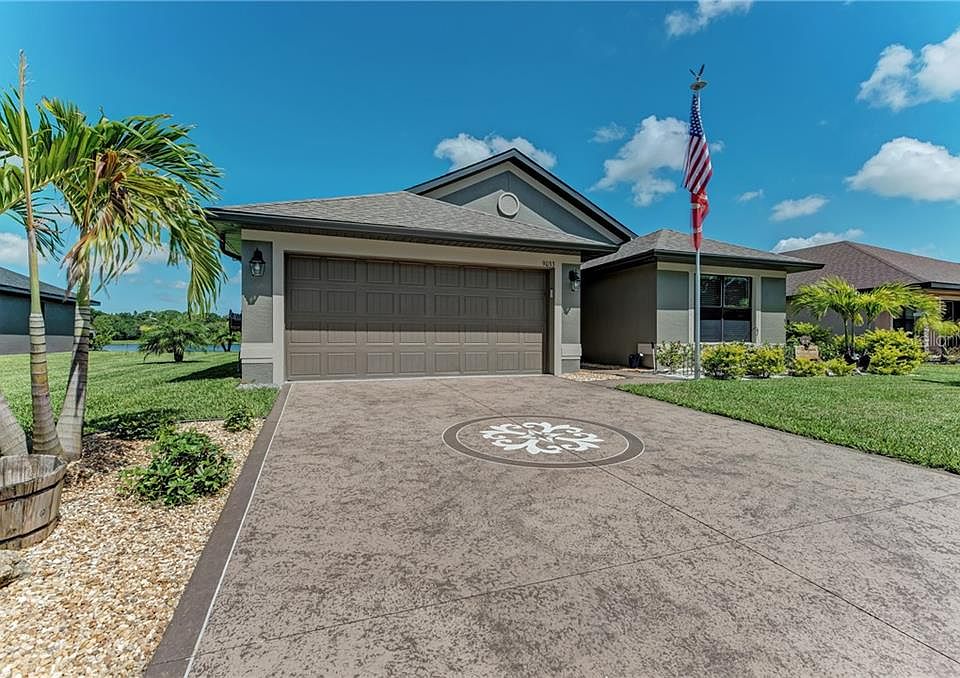 One or more photo(s) has been virtually staged. Great home in a fantastic location with easy access to the freeway to Tampa and Sarasota. This quaint 4 bedroom/2 BATHROOM, 1 story home backs up to a LAKE VIEW and has views of a PRESERVE. As you drive up to the home, the street is lined with trees, preserves and nature. The beautiful driveway with designer detail and tropical LANDSCAPE give this home great curb appeal. Walk through the welcoming entryway into your dining room and great room featuring an open kitchen, living room, dining room and breakfast room all open to each other. The great room offers ample space to set up a sectional and a large screen TV. The kitchen is FRESH AND MODERN and offers ALL STAINLESS STEEL KITCHEN APPLIANCES CONVEY WITH THE HOME. Light kitchen cabinets, stone counters and stainless steel appliances set this kitchen up for a fresh look and feel. The master bedroom is spacious and features a master bathroom suite with double sinks soaking tub and tiled shower. The other 3 bedrooms offer plenty of space for everyone and share a second bathroom. Head outside and enjoy the afternoon in the extender lanai while taking in the views of the lake and the preserve. The garage has epoxy floor and built in shelf that convey with the home. The low HOA's make this an ideal home. Call and schedule a private viewing today.