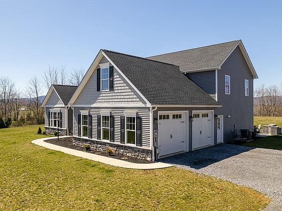 This architect designed custom home was built by Pinnacle Homes in 2019 and completed in early 2020 and is situated in Apple Jack Estates, a rural neighborhood with acre plus lots offering custom homes and privacy! Convenient location with quick access to the towns of Mercersburg, Greencastle, Waynesboro and even the Maryland state line! The setting with mature trees, and abundant wildlife make this an ideal location for people who want the best of both worlds—subdivision living and country life. The home is like brand new and is unique to other homes, not your cookie cutter neighborhood. The floor plan is open and airy with a vaulted ceiling in the living room and lots of windows to enjoy the outdoor scenery. Access to a covered patio with a vaulted ceiling off the kitchen furthers your outdoor enjoyment. Main level living features include a laundry room off the kitchen and a main level master suite with a tray ceiling, a six-foot tile shower, and a den/office. The second floor has two bedrooms with walk-in closets, a full bathroom with a granite topped double bowl vanity and a bonus room with a closet which could be used as a fourth bedroom. The master bedroom and den have its own zoned heat pump and a second heat pump operates two zones between the kitchen and upstairs. There is also a 250 gallon propane tank as back up to supplement heating below freezing. The propane is also the fuel source for the stove. The fully insulated side load garage has a work bench and storage for a heat pump, the hot water heater and a water softener system. Save money with a sand mound septic system and well. Come see all the custom touches that went into this beautiful property!