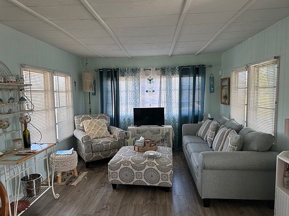 This beautifully decorated nautical single-wide is turnkey-ready! Just bring your clothes and bathing suit and come enjoy your year-round heated pool in this amazing 55+ community minutes from gulf beaches. This home feature's a 1 bedroom with 3 large closets, built-in dresser drawers and a dedicated work desk for those of you who still work from home, and plenty of windows for added ambiance and great lighting. The living room and kitchen area are an open floor plan adjacent to the screened-in sunroom where you'll enjoy morning coffee while you watch the sunrise. For those nights when you're in the mood for guests, barbecue, and a fire pit the home features amazing outdoor seating. The home has brand new furnishings, brand new flooring, brand new roof gutters downspouts, and brand new vapor barrier, and the tie-downs have been replaced as well. A 10-year roof guarantee is included. This home is perfect if you're looking to own a slice of paradise. The community amenities are amazing as well. A year-round pool, community center, library with free Wi-Fi, computers, and a full-fledged fitness center are all included with your community. Don't let this one pass you by. Contact me today to schedule your tour live or virtual. All listing information is deemed reliable but not guaranteed and should be independently verified through personal inspection by appropriate professionals. Integrity Mobile Home Sales cannot guarantee or warrant the accuracy of this information, measurements, or condition of any property. Measurements are approximate. Lot rent is subject to change.
