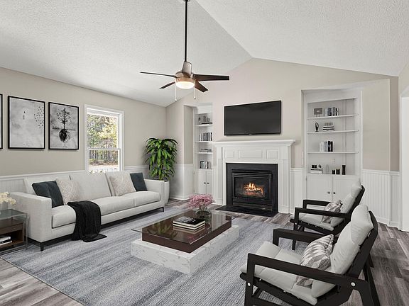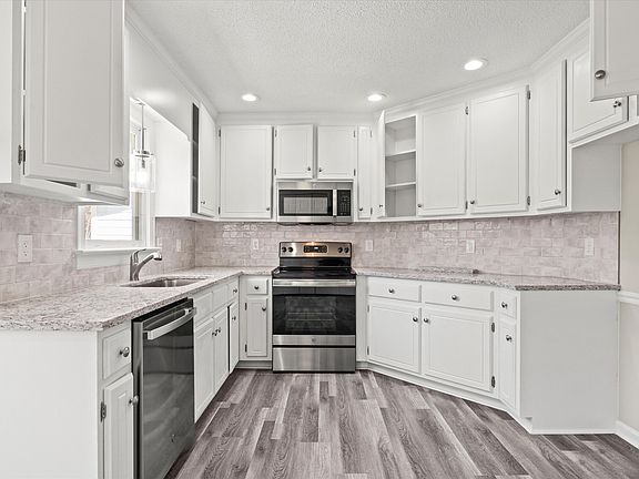 Charming Ranch with Rocking Chair front porch on over an ACRE! Stunning kitchen with granite countertops, tile backsplash and stainless steel appliances. Great room with valutrd ceiling and LVP flooring. Move in and Enjoy! Staged photos for illustration only, to show homes potential.
