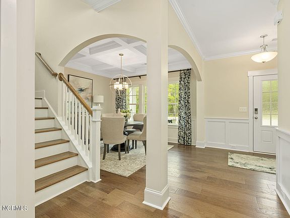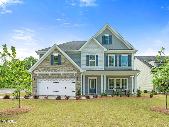 Located in the highly desirable Scotts Hill area, Scotts Hill Village is a natural gas community with direct access to I-40 and 17N for an easy commute to the area beaches and all of the best shopping and dining. The Victor is a 2-story home with 5 bedrooms and 3.5 baths including first floor Primary Bedroom, Sunroom and large Bonus Room. Primary bedroom features tray ceiling, 5 ft walk-in tile shower with dual shower heads, linen closet and oversized walk-in closet. Four secondary bedrooms, 2 full baths and large Bonus Room complete the upstairs. Family Room with fireplace overlooks Kitchen and Sunroom. Formal Dining Room with coffered ceiling and Judge's Panel. Spacious Kitchen features large island, gourmet layout with gas range, wall mounted microwave and oven, white Farmhouse sink, under cabinet lighting and Pantry. Light filled Sunroom has panoramic view of back yard. Outside enjoy fully sodded front & back yards with irrigation. Home is under construction. *Photos not of actual home. Designer features may be shown. Finishes will vary.*
