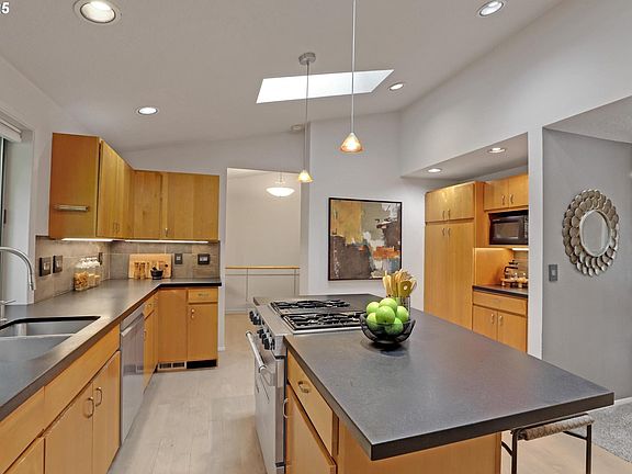 In coveted Ashcreek, this contemporary home with western sunset views and endless outdoor escapes is a rare opportunity. Vaulted living spaces and walls of windows bathe the interiors in natural light, creating a warm and elevated sense of connection to the outdoors. The ideal floor plan places the primary suite on the main level, complete with a tastefully remodeled ensuite. At the heart of the home, a vaulted open kitchen with a cozy island flows into the great room—perfect for intimate evenings by the fireplace—while the spacious living and dining areas enjoy tranquil views year-round.The lower level offers remarkable flexibility with three additional bedrooms, a family room, an office, and a media room. A separate studio, currently outfitted as a darkroom, is ready to be transformed into the perfect creative or hobby space.Outside, multiple entertaining decks extend the living space, while a sports court stands ready for activities such as basketball, pickleball, and volleyball. Mature gardens and a lush canopy of trees frame sunset views of Cooper Mountain, Bald Peak, and the Oregon Coast Range.Set in one of Portland’s most desirable neighborhoods, you’ll love the easy proximity to Garden Home shopping and charming Multnomah Village. The community is anchored by Smith School's playground, sports fields, and dog park, as well as easy access to nearby SW trails. Few homes in Ashcreek capture this kind of light—western sunsets pouring through the trees, turning each evening into something rare and unforgettable.