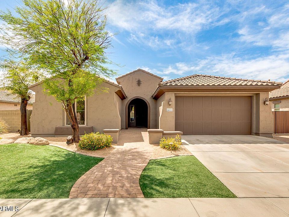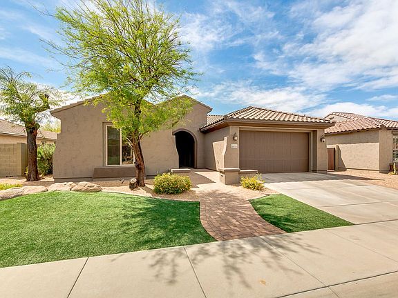 Love where you live Westwing Community offers mountain views, miles of trails and neighborhood greenbelts created for your enjoyment. This home is located very close to the Community Park and Westwing elementary K-8, an A+ rated school. Plenty of shopping and restaurants nearby along with the new Paloma Park is just outside the Westwing community. Popular Hummingbird model single level, 2,823 S.F. 4 bedrooms, 3 baths, 2 CG, single level home with Great room & eat in bays in mater & nook. The den and entertainment rooms can be converted to 4th and 5th bedrooms. Backyard has play pool, built in barbecue and gas fire pit. Floor plan on #6 in photos. Lake Pleasant is approx. 12-15 minutes away. Easy access to the 303 HWY & all that Westwing has to offer. Welcome home!
