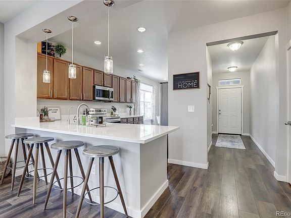 Discover the best of Arvada living in this meticulously maintained 4-bedroom, 2-bathroom ranch-style home nestled in the sought-after Whisper Creek neighborhood. With an open floor plan boasting 9’ ceilings, this main level living gem offers a seamless blend of comfort and convenience. Step inside to find an abundance of natural light flooding in through west-facing windows, highlighting the newly installed luxury vinyl plank flooring and plush carpeting. The spacious kitchen, complete with a dining area, updated appliances, new granite countertops, and a generous pantry, is a culinary enthusiast's dream. The primary bedroom is a tranquil retreat featuring new carpeting and an upgraded ensuite bathroom with a linen closet and a tastefully designed walk-in closet. Three additional main level bedrooms share a well-appointed full bathroom, while the fourth bedroom serves as an ideal space for a home office or flex room. Outside, relish in the privacy of your covered front patio or unwind on the new deck, perfect for alfresco dining and summer gatherings. The home also offers ample storage, including a sizable crawl space and an oversized 2-car garage with built-in shelves. The meticulously landscaped yard with an irrigation system adds to the property’s allure. Community Amenities: This residence is more than just a home; it’s an invitation to a vibrant community. Whisper Creek offers a lap pool, kiddie pool, clubhouse, playgrounds, tennis courts, a baseball diamond, and paved trails meandering throughout the neighborhood. Enjoy the small beach area at Standley Lake, easily accessible by bike. Top-rated JEFFCO schools, proximity to shopping, dining, and entertainment options, including Freedom Street Social, Resolute Brewing, Lot ONE and The Bluegrass, make this location exceptionally desirable. With easy access to Denver and Boulder via nearby highways, you can savor all the benefits of suburban living while remaining connected to city amenities.