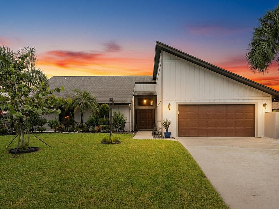 Step into a one-of-a-kind California contemporary masterpiece tucked away in the coveted Gardens Glen community of Palm Beach Gardens. This striking home blends timeless 1980s character with fresh, modern upgrades. Vaulted wood ceilings, dramatic exposed beams & walls of sliding glass that flood the space w/ light & open seamlessly to a private screened pool & covered porch. No rear neighbors, no HOA! Enjoy peace of mind with impact glass throughout, refreshed siding, new interior & exterior paint, 2 brand new A/C units, tankless water heater, new kitchen appliances, new washer/dryer, new pool equipment & attic insulation. Termite bond in place. The oversized garage features epoxy flooring & fresh paint perfect for storage, hobbies, or a sleek home gym. Other recent enhancements include new flooring in the bedrooms, kitchen, and laundry room, offering a fresh and cohesive feel throughout. The entire pool enclosure has been rescreened for comfort and peace of mind. Exterior improvements feature new gutters and a newly installed attic door with added flooring for convenient overhead storage. Plumbing and electrical systems have been thoughtfully updated. Outdoors, enjoy a revitalized yard with new sod and an upgraded irrigation system featuring a new motor and valve. A newly installed ADT security systemcomplete with cameras and a smart doorbelladds an extra layer of safety and convenience.