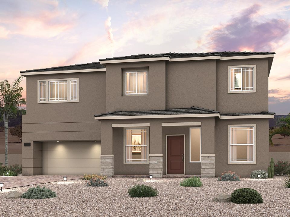Residence 1708 at Sierra at Skyeview offers modern two-story living in a thoughtfull designed layout where each residence shares a private drive with neighboring homes, creating a low-maintenance lifestyle within the desireable planned community of Skye Canyon. The main level features an inviting open-concept design that connects the great room, dining nook, and well-appointed kitchen with a center island and pantry. The layout is ideal for both entertaining and everyday living. Upstairs, you'll find two secondary bedrooms, a full bath, a versatile loft, and a covenient laundry room. The private owner's suite includes dual walk-in closets and a bath featuring dual vanities, private water closet, and a walk-in shower. Additional home highlights include: Alumawood patio cover Century Home Connect Upgraded kitchen appliance 42" upper cabinets at kitchen (Snow) Full kitchen backsplash LG kitchen appliances Two-tone interior paint Upgraded tile flooring at main living areas