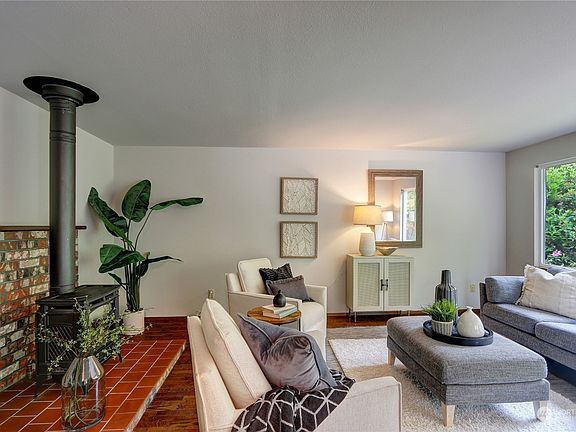 Enjoy your own private oasis in Edmonds! This charming 2-bed, 1-bath home is tucked away in a secluded neighborhood, surrounded by lush greenery on 3/4 of an acre. With hardwood floors, a free-standing gas stove, and a spacious kitchen, this cozy abode offers comfort and style with tons of opportunity to add your personal touch. The huge wooded lot boasts towering trees and beautiful plants, providing a serene backdrop. Enjoy the peaceful nature views from the inviting wrap-around deck. Located in a sought-after area, this hidden gem offers the perfect balance of tranquility and convenience. Don't miss your chance to experience this tucked-away treasure in an amazing part of Edmonds near tons of convenient amenities.