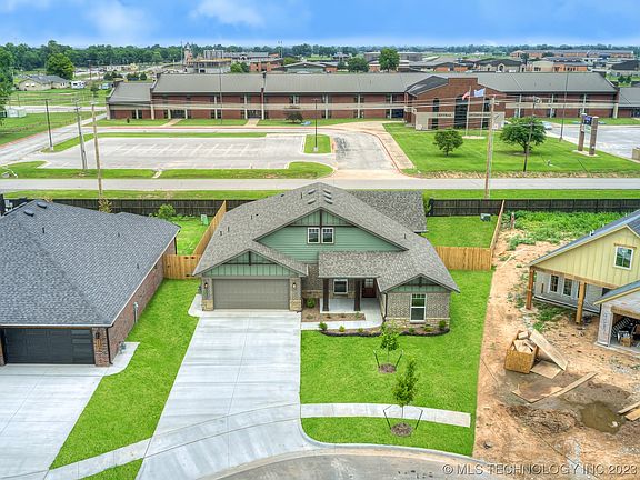 *Reduced $19k* Welcome to this gorgeous mountain cottage-style home, complete with three tranquil bedrooms and a peaceful study, all nestled on a desirable corner lot. Inside, the timeless kitchen boasts magnificent quartz countertops, a spacious farmhouse sink, and sleek built-in appliances. A picturesque cathedral ceiling pronounces the grandeur of the great room, while wood-look tile floors and a cozy fireplace set a welcoming tone. This stunning property also comes with an upgraded landscaping package, providing the perfect finishing touch to an already enchanting home. With over 2,000 square feet of living space, this abode is perfect for those seeking comfort and relaxation in a truly breathtaking setting. Don't let this opportunity slip away, schedule a viewing today! New homes in this sought-after suburb of Tulsa offer homeowners the perfect balance of city life and community comfort. With amenities like parks and splash pads, Bixby Village is the perfect place to find your dream home. Located across the street from the highly regarded Bixby Central Intermediate School and High School, the location could not be better for raising a family. Included features: * One-year home warranty * 10-year structural warranty * Guaranteed heating and cooling usage on most Ideal homes * Fully landscaped front & backyard * Fully fenced backyard. Floorplan may differ slightly from the completed home.