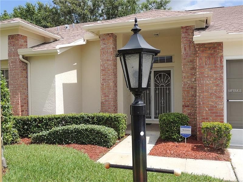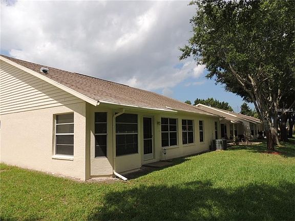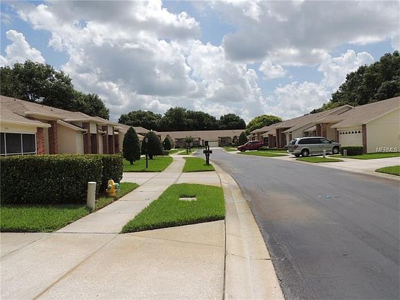Spotless end unit in a popular 55+ community in the Trinity area! Wait till you see all that this place offers...large open floor plan with the formal living room flowing into the formal dining area into the kitchen. On top of that you have 3 sliding glass doors (that could be removed) that open up to a long bonus rooms that spans 21 feet across the rear of this lovely home overlooking a lush yard with room for a BBQ. Neutral carpeting and ceramic tile throughout with a bright kitchen and attached laundry room with newer washer/dryer and mud room sink. There is a large master suite with dual walk-in closets next to the master bath with dual sinks and a handicap accessible shower. The oversized garage has plenty of storage room fully equipped with shelves and pull down stairs, a garage door opener and osmosis system connected to the water heater. As if the house isn't enough to talk about the Clubhouse within this gorgeous community has every amenity one could ask for such as the following: tennis, bocce ball, shuffleboard, billiards, card table rooms, movie room, fitness center, ballroom, wine club, dance parties, etc. Close to shopping, parks, golf courses and plenty of restaurants not to mention close access to a variety of medical facilities including the Trinity Health Center, Apollo Medical, and Trinity Hospital.