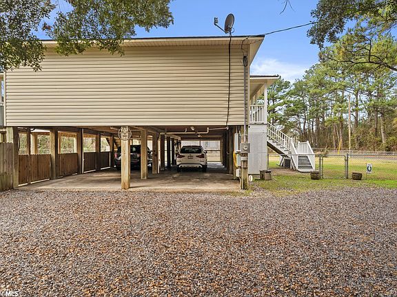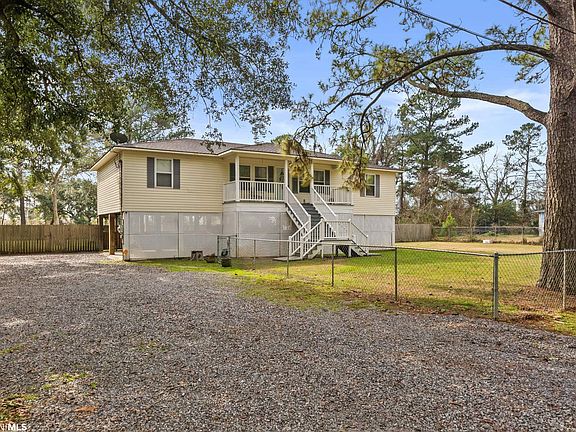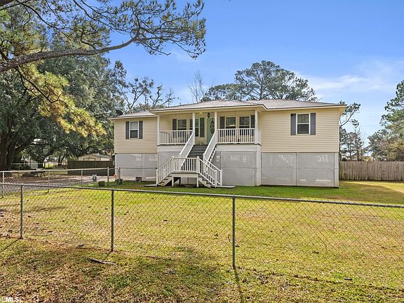 Welcome Home to 9035 Mclean St in Bayou La Batre, AL! With a open concept and split floor plan, this home offers 3 large bedrooms and 2 full baths. It's a must-see with new granite counter tops, a large granite island, spacious dining area. New hardwood flooring installed in the living area. The master bath has the luxury of a separate tub and shower, 2 nice size walk in closet, and double vanities. Large, covered front & rear porches. The carport has enough room for a small boat, ATV, and up to 4 automobiles. 1 acre lot completely fenced in. The detached storage shed is around 12 x 14 & will remain with the property. The home was built with 10 x 10 20 ft. beams steel bolts 12 ft. below ground with concrete covering for a solid structure. The home sits 8 ft. off the ground. New whole house water filtration system recently installed. Agent is related to the seller. Schedule a showing today!