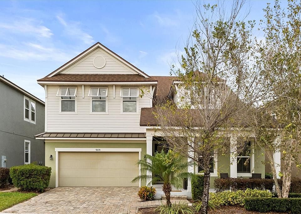 Welcome to 9035 Sunshine Ridge Loop — Your Dream Investment or Vacation Home in Solara Resort: Step into luxury and profitability with this stunning 5-bedroom, 4.5-bathroom fully furnished home in the highly desirable Solara Resort, minutes from Walt Disney World and Orlando’s top attractions. This resort-style gem spans of elegant living space. Set within a gated, all-ages community designed for both vacationing families and investors. The first floor features an open layout connecting the living, dining, and kitchen areas — ideal for entertaining or relaxing after a day at the parks. Upstairs, you’ll find creatively designed rooms — including a Mickey-themed room, a Beauty & the Beast bunk room, and comfortable double-bed suites. The king suites (one on the first floor) guarantee comfort and privacy for the whole family or your guests. An entertainment space on the garage provides fun for both kids and adults. Enjoy your own screened patio and a pool that can be heated, perfect for relaxing anytime. The house is complete furnished and it includes an in-unit washer/dryer, full kitchen appliances, all ready for short-term guests or long stays. The Community feature a large clubhouse (about 13,000 sq ft) — the main hub for many resort amenities; Resort-style pool complex (heated “grand pool”) with cabanas, Water-park style with splash pad for kids, water slides, and a surf/wave simulator FlowRider (available for a fee) for surfing-ish fun; Pool-side bar/restaurant (often referenced as a bar & grill) plus a café / gelato shop / sundries store on-site; Playground / children’s play area — good for younger children; Teen/tween hangout center or games / arcade-style room (video games, board games, etc; Fitness & wellness: a full-service fitness center, outdoor fitness lawn (lawn for yoga/Pilates or similar), and other recreation facilities like Sports courts/fields: full-size basketball court, sand volleyball court, soccer field. Contact us and schedule a showing! MOTIVATED SELLER!